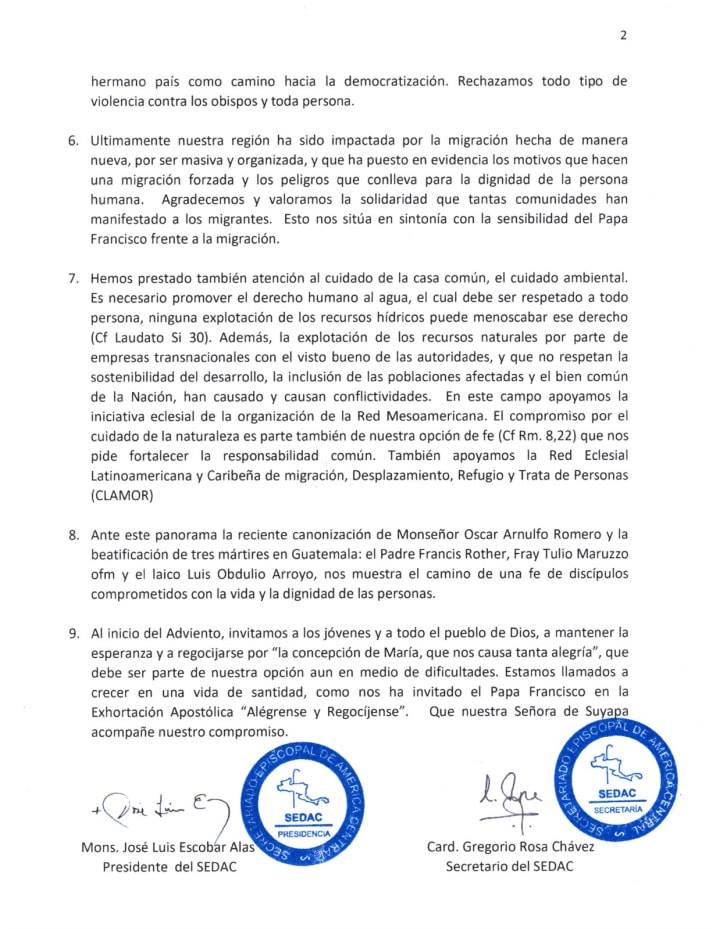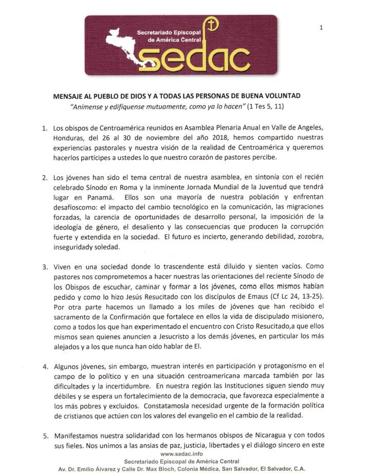 MENSAJE DE LA ASAMBLEA ANUAL: SECRETARIADO EPISCOPAL DE AMÉRICA CENTRAL 4 diciembre by conferencia chat_bubble_outline 0 comment(s) Mensaje del Secretariado Episcopal de América Central (SEDAC) al pueblo de Dios y a todas las personas de buena voluntad. Descargar MENSAJE en PDF
